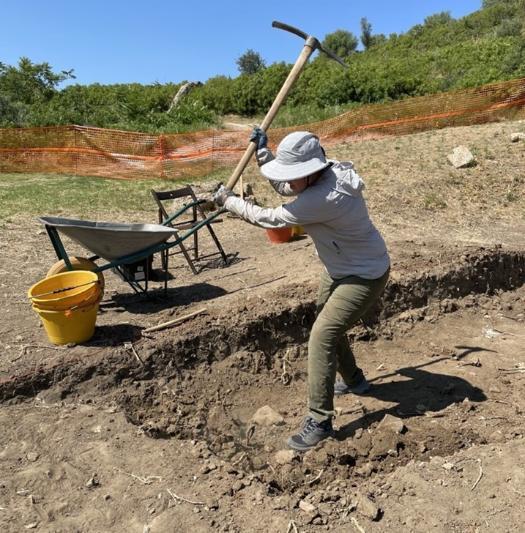 CH: Yeah, I personally loved scarping because of how scarping is where you make flat 90-degree walls on the side of the trench. So you take a hand pick and you're just making it as flat as possible, and so that allows you to see soil changes in the layers.