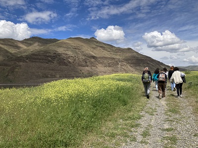 Students learned about layered histories of the locations and explored how the various installations—from the elevated Bird Blind situated in the woods of Troutdale, OR to the low, stone benches of the Listening Circle in Chief Timothy Park in Clarkston, WA—encourage a multi-sensory engagement with the natural environment. The visit was preceded by a classroom visit and public talk by Dr. Matt Reynolds, Whitman College, to discuss his book manuscript and art exhibit on the Confluence Project.