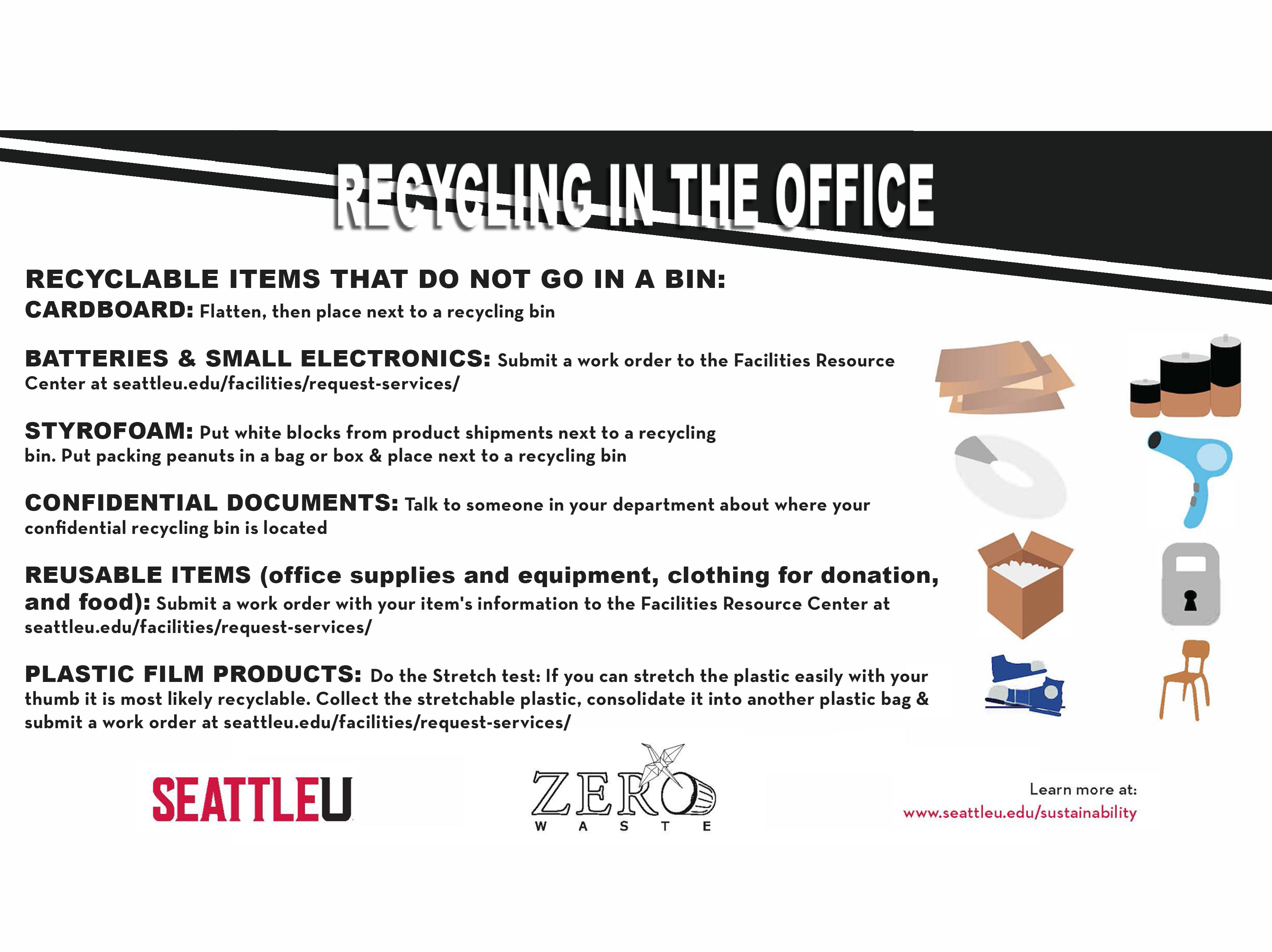 This event is part of SU’s participation in the annual Race to Zero Waste competition. For more info, go to www.seattleu.edu/race-to-zero-waste/