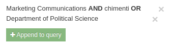 - To add you need first to click append to query and start typing what you want to search for, click if it is an element of a list or just enter if it is a text element