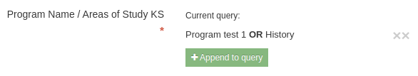 This is searching for the Program Name Program test 1 plus the History area of study