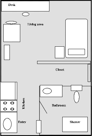 Each room features a private bathroom, refrigerator, sink, and microwave. Individual units do NOT have kitchens. Residents will need to provide their own linens.