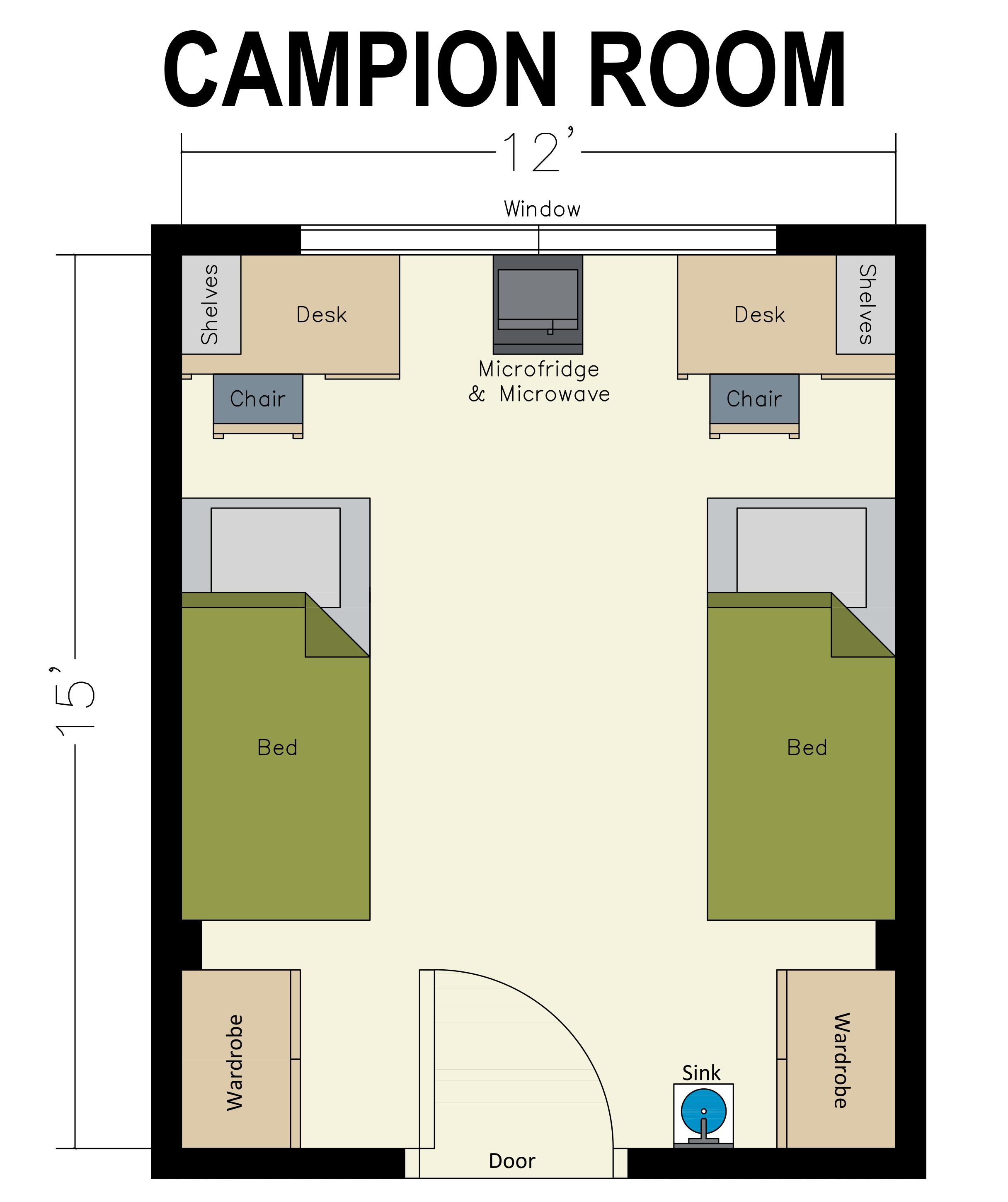 3 person room. A small number of larger rooms where three people share a single room. Triple Plus rooms in Bellarmine and Campion only.