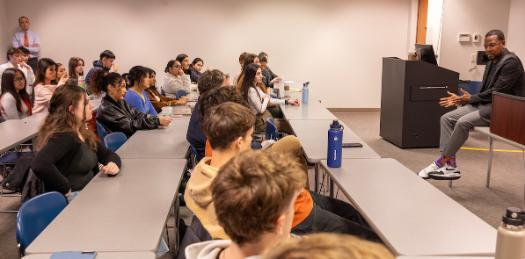 Sean Tresvant addressing an Albers marketing class during his visit.