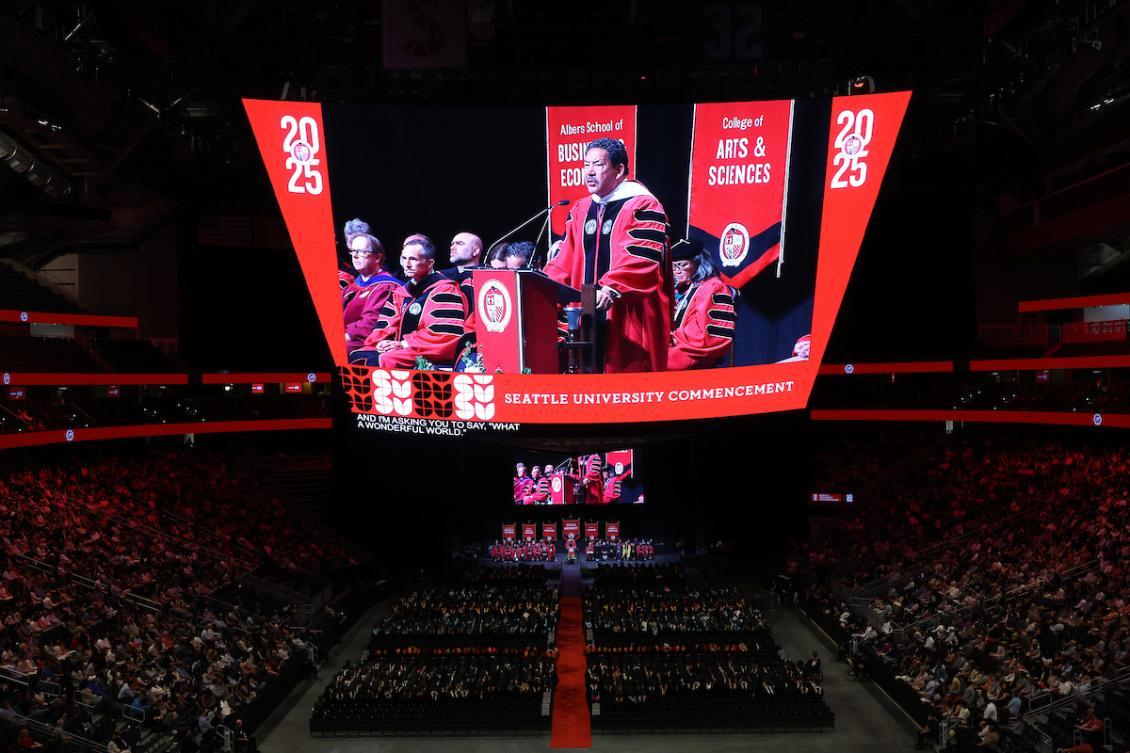 “At Seattle University, our mission is to educate and empower you to become leaders for a just and humane world. There are three important ways you can bring your Seattle University education with you to become that kind of leader—resist the lure of ideology; push yourself to engage with people who think different than you; and commitment to civil expression and engagement.
