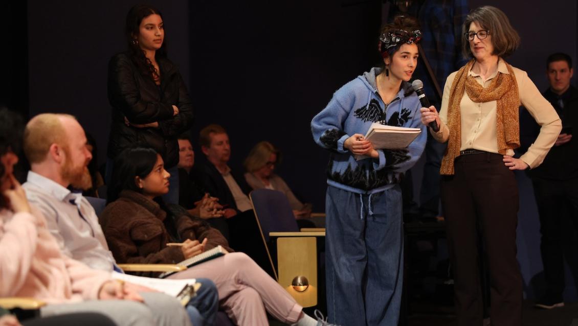Student Hope Jose-Day asks a question of Gov. Ferguson.