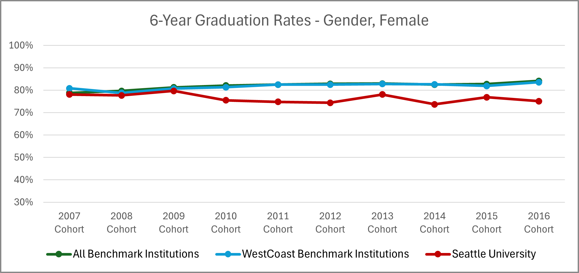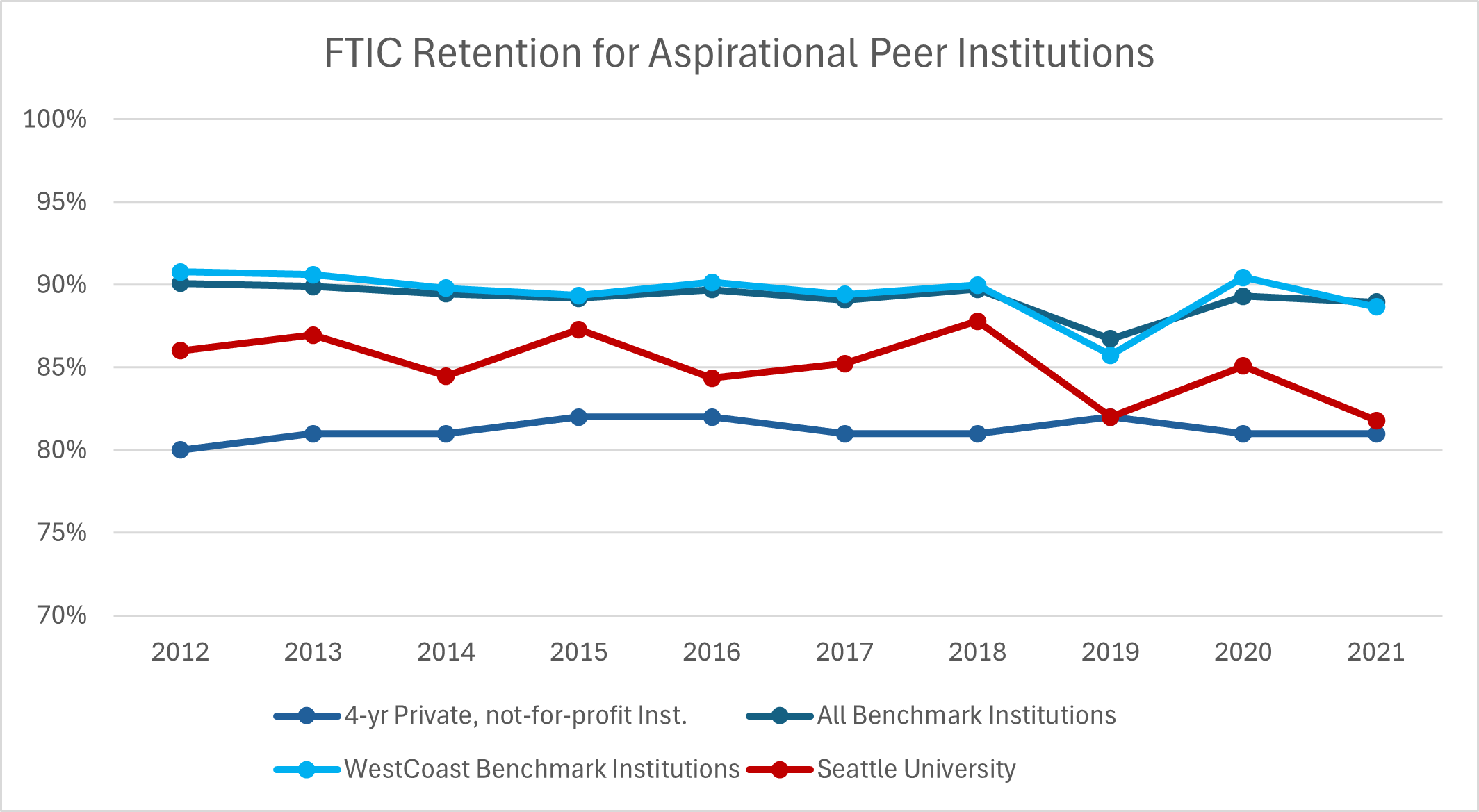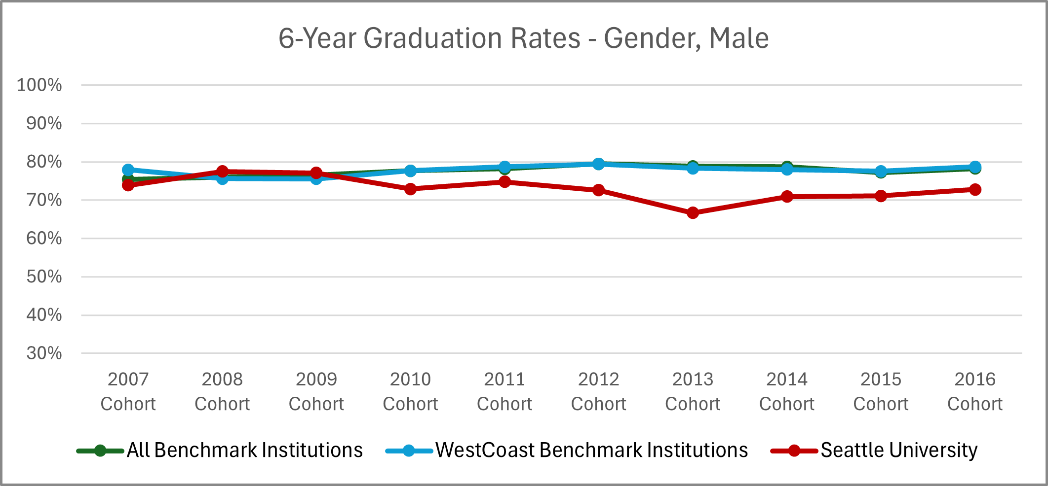 | Cohort | All Benchmark Institutions | WestCoast Benchmark Institutions | Seattle University |