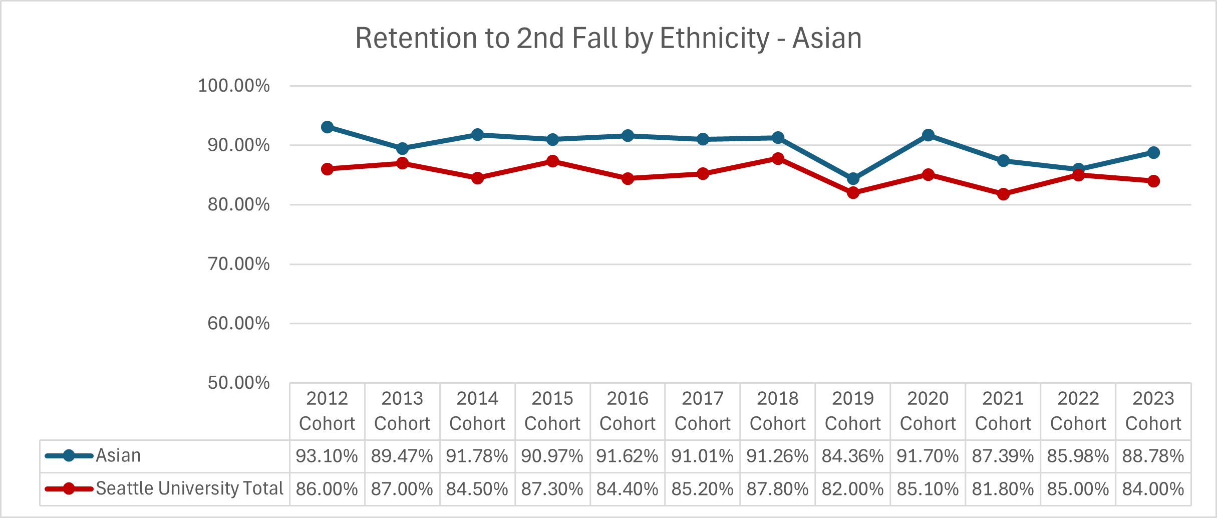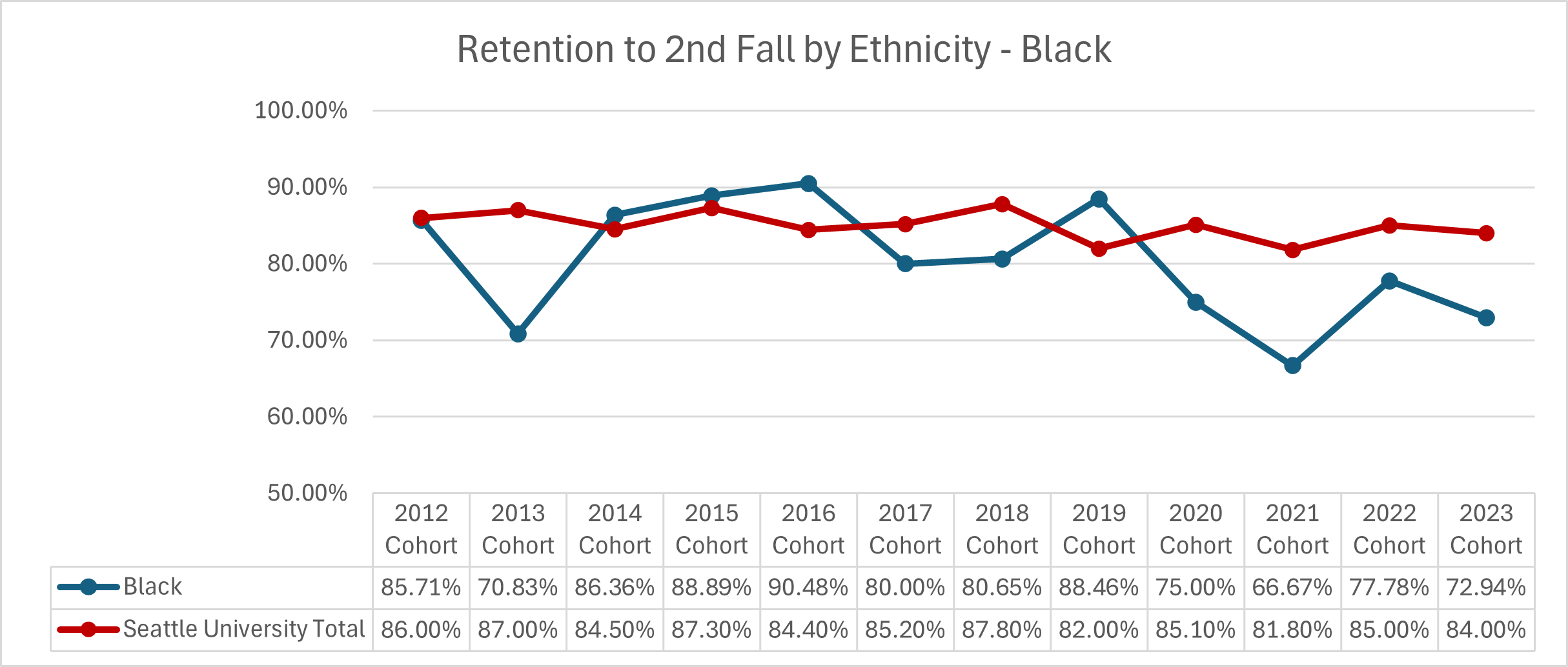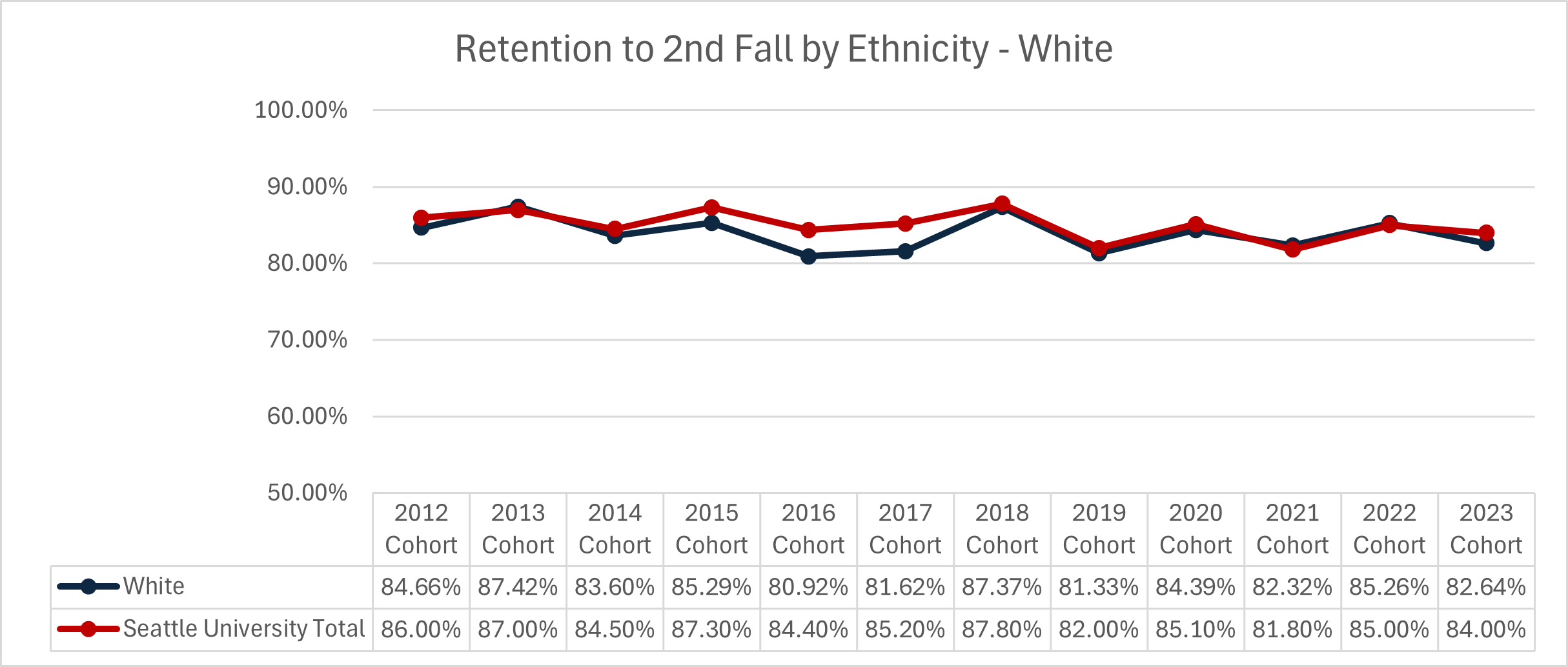 | Cohort Year | White | Seattle University Total |